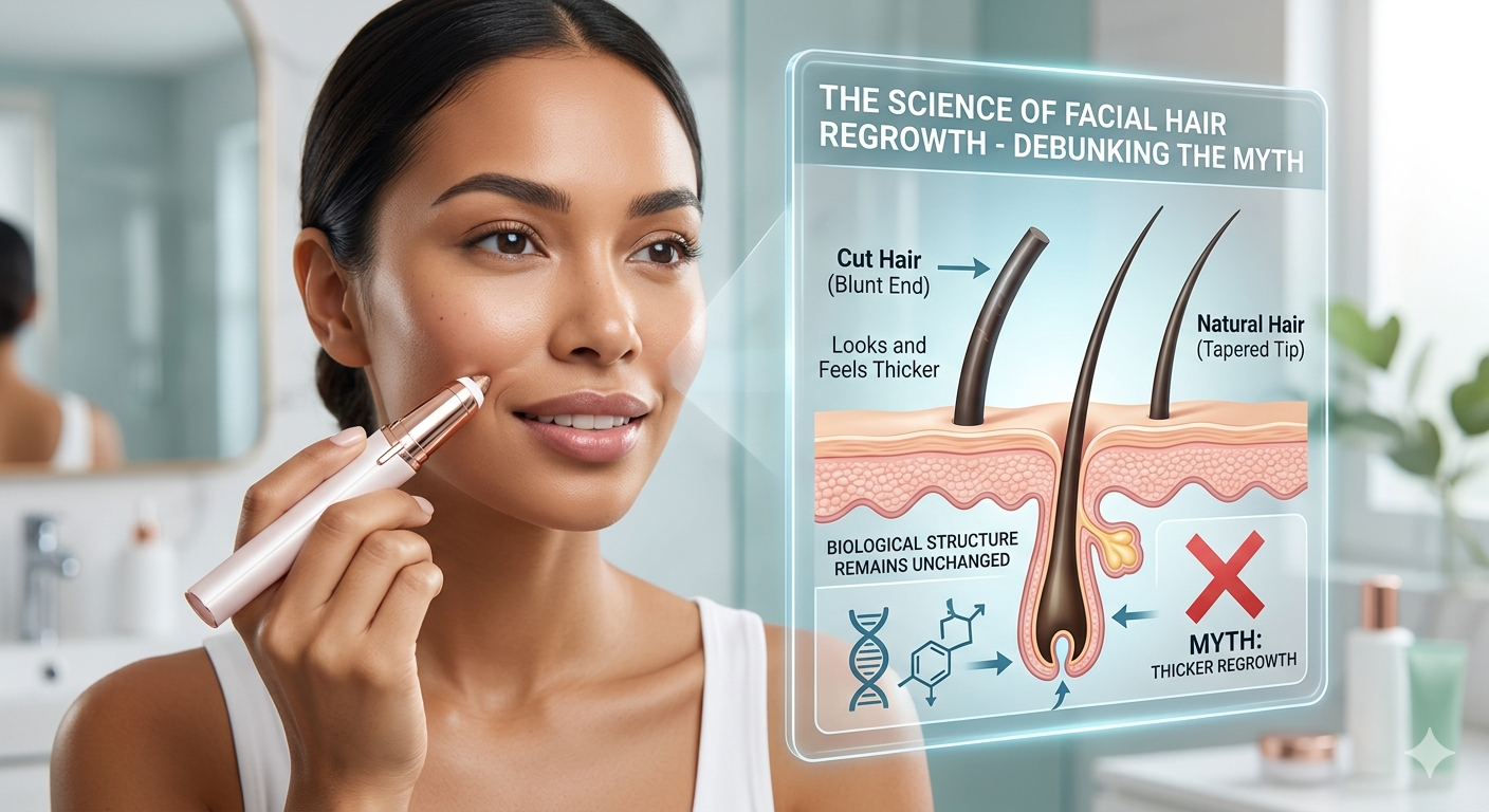 Ketebalan dan tingkat pertumbuhan rambut ditentukan secara eksklusif oleh faktor genetik dan hormonal, bukan oleh metode penghilangan eksternal. Setiap rambut manusia tumbuh dari folikel jauh di dalam lapisan dermis kulit. Saat Anda menggunakan a penghilang bulu wajah , Anda bisa memotong rambut di permukaan atau mencabutnya dari akar. Tak satu pun dari tindakan ini berkomunikasi dengan bohlam folikel untuk menghasilkan untaian yang lebih tebal. Folikel mengikuti siklus yang telah ditentukan—anagen (pertumbuhan), katagen (transisi), dan telogen (istirahat)—yang diatur oleh sinyal internal seperti androgen dan suplai darah.